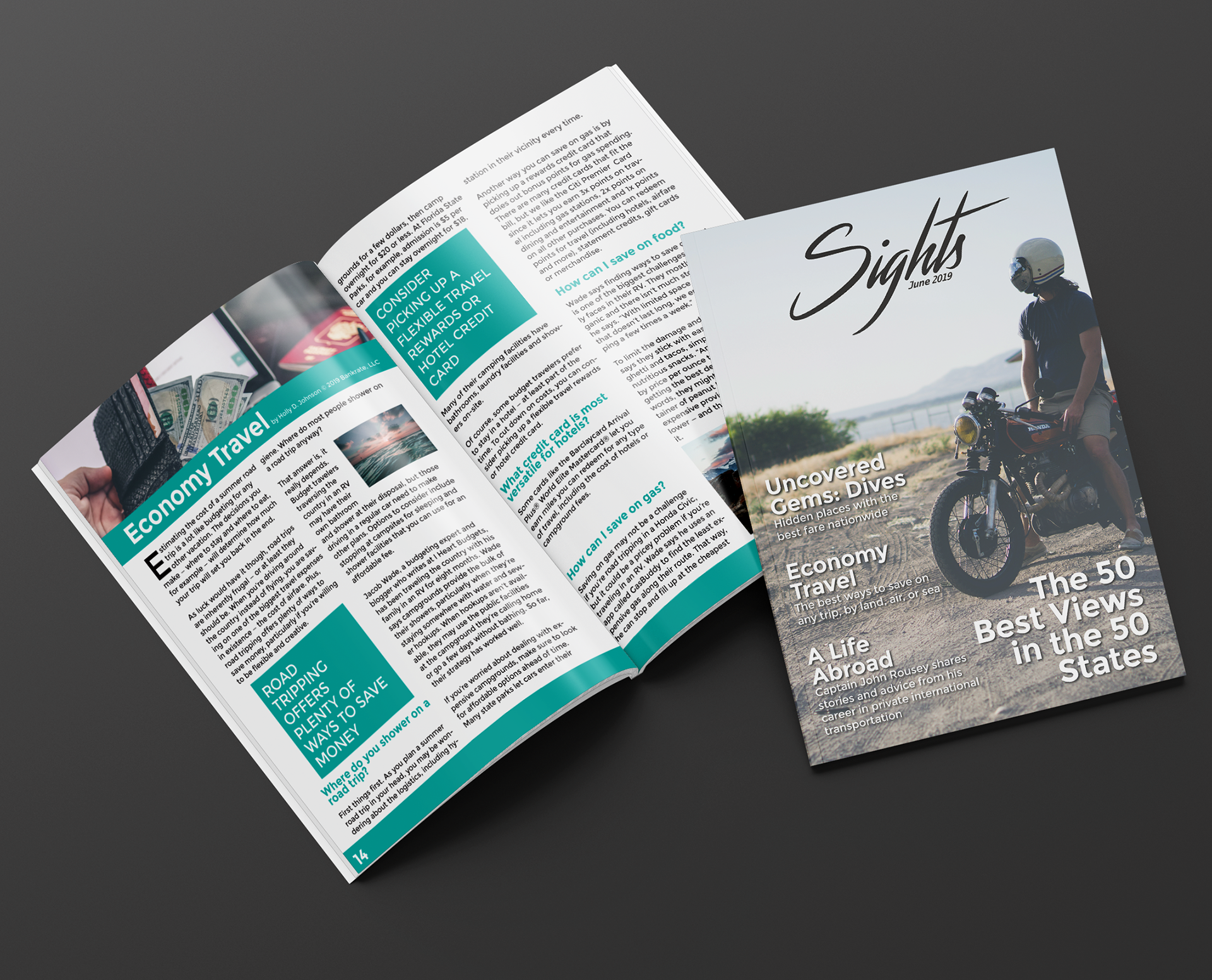 Sights is a magazine with a focus on travel articles targeted at young adults to those of middle age.